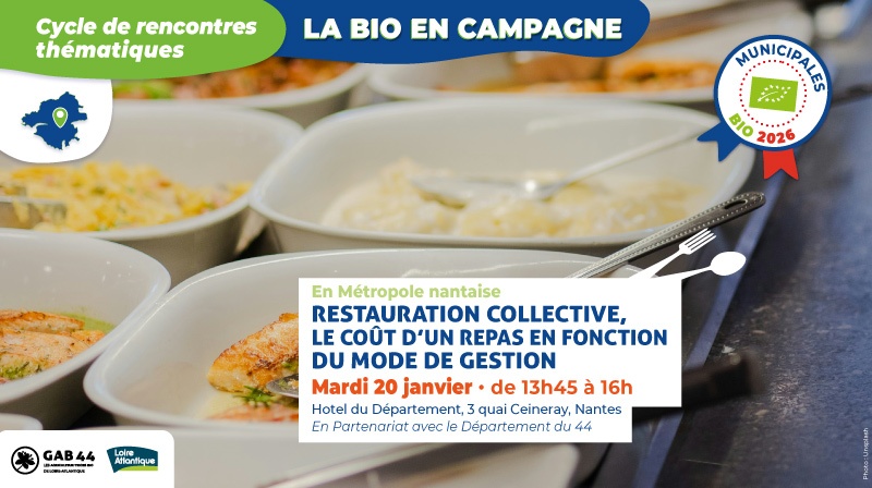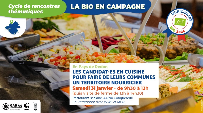 • Organisée par le WWF, le Mouvement des Cuisines Nourricières et le GAB 44, la matinée sera ponctuée d’ateliers participatifs avec des professionnels de la restauration collective. Elle reviendra également sur des éléments chiffrés permettant d’évaluer l’impact sur le territoire de ce type de projet (coûts, retombées économiques, emplois induits, impacts sur la qualité de l’eau, le climat, la biodiversité…).
