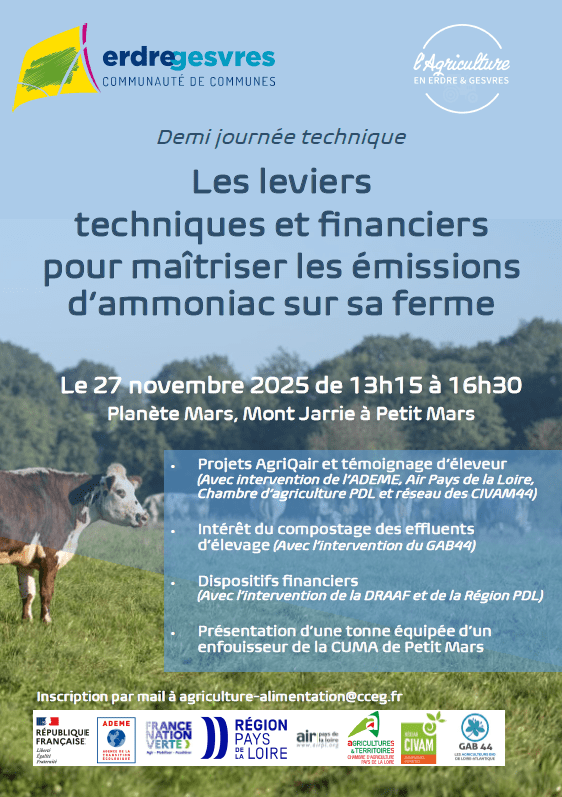 - Témoignages de groupes lait autour de deux projets ayant bénéficiés du dispositif AgriQu’air (intervention de l’ADEME, de la Chambre d’agriculture PDL et du réseau des CIVAM44)